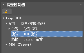 “指定控制器”卷展栏上,在列表窗口中高亮显示旋转轨迹。