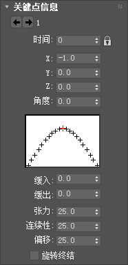 控制关键点处曲线的切线属性。默认设置是产生通过关键点的平滑动画曲线的唯一值。所有其它值都会在动画曲线中产生非连续性,从而引起动画的突然变化。默认设置为 25。