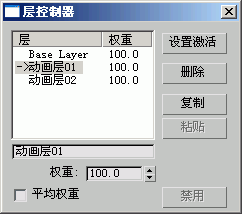 要指定用于接收后续动画关键点的层,并调整其权重,请高亮显示列表中的层,然后单击“设置激活”。活动层在列表中用一个箭头来标记。