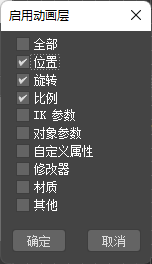 在为选定对象启用动画层时,3ds Max 将为您在“启用动画层”对话框中指定的每个动画轨迹指定一个层控制器。