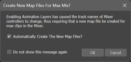如果为在运动混合器中已经加载动画的对象启用动画层,则会打开以下对话框: