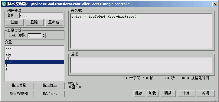 5. 在“脚本控制器”对话框的“表达式”窗口中输入以下脚本: