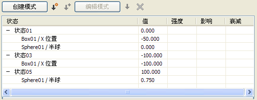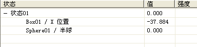 如果状态(滑块)值为 100.0,而“Sphere01 / 半球”值为 0.750,则反应管理器将会添加状态。