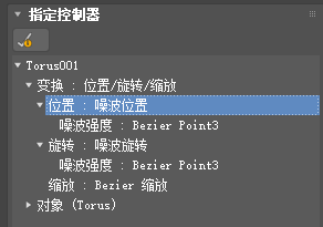 “指定控制器”卷展栏上,在列表窗口中选择旋转轨迹。