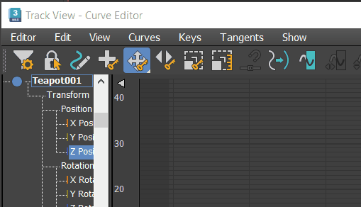 在“控制器: 轨迹视图”工具栏上也可以找到“控制器”工具,默认情况下这些工具栏处于隐藏状态。右键单击工具栏,然后选择“显示工具栏”
