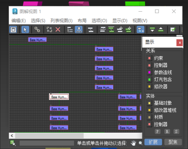 “图解视图”是一个窗口,用于以层次视图形式显示场景中的对象。该视图提供了在场景中选取和选择对象并导航至这些对象的另外一种方式。