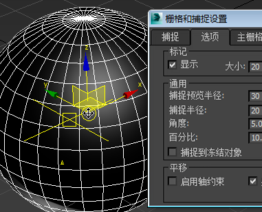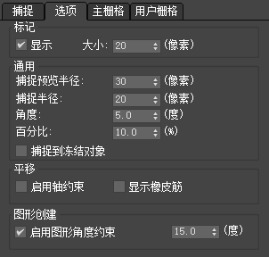 “栅格和捕捉设置”对话框的“选项”面板可以设置与捕捉相关的选项。
