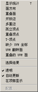 所有模式均与子对象(顶点、边和面)有关,无论是几何体还是 UVW。然而,您无需处于子对象层级,检查程序也能显示其结果。检查程序结果显示在对象层级及所有子对象层级。