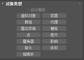 虚拟辅助对象是一个线框立方体,轴点位于其几何体中心。它有名称但没有参数,不可以修改和渲染。它的唯一真实功能是它的轴点,用作变换的中心。线框作为变换效果的参考。