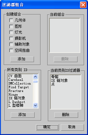 这些组合存储在 3dsmax.ini 文件中,因此它们通过所有会话对所有场景保持有效。