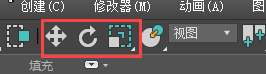 主工具栏中的“变换”、“旋转”和“缩放变换”工具