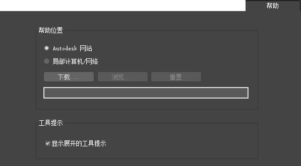 默认情况下,此帮助将从 Autodesk 网站打开。但是通过此面板,您可以从将帮助系统下载或提取到的本地或网络驱动器中打开帮助。