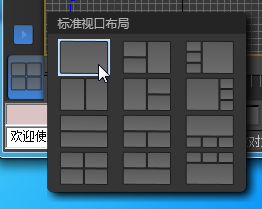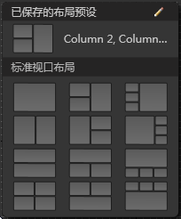将打开“视口布局预设”菜单。由于尚未保存任何自定义预设,因此它仅包含标准视口布局。每个项目都由一个缩略图图标(描述其布局)表示。