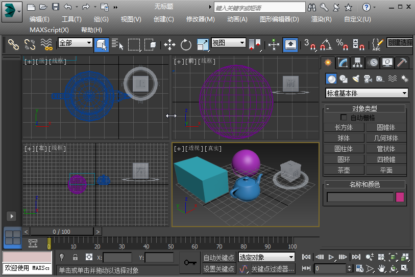 将显示标准的四视口布局。