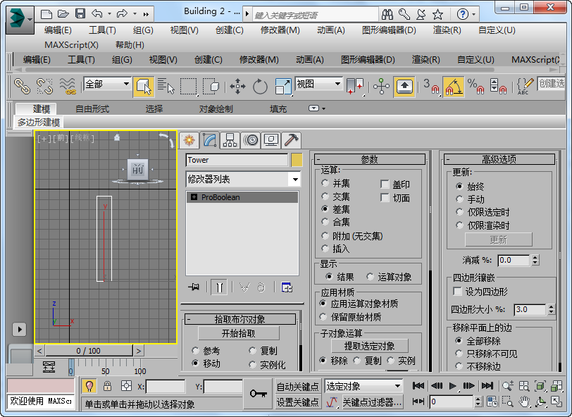 当处理诸如“ProBoolean”或“粒子流”等有很多控件的对象时,多个命令面板列将非常有用。
