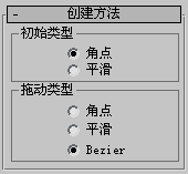 线的创建方法选项与其他样条线工具不同。单击或拖动顶点时,选择此选项可控制创建顶点的类型。