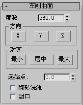 当选中车削子对象时,带有车削参数的卷展栏将显示在“修改”面板的底部。