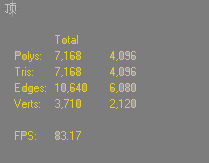 通过启用和禁用“视口配置”对话框的统计信息面板中的选项,可以自定义该视口的统计信息。下列统计信息反映所有处于启用状态的选项。