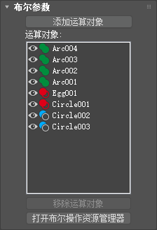 运算对象保留为布尔对象的子对象。双击该子对象以更改参数并使用变换工具。通过修改布尔操作对象子对象的创建参数,可以随时更改操作对象几何体,以便更改布尔结果或设置布尔结果的动画。