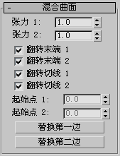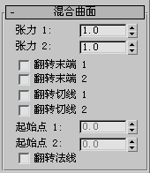 当选中混合曲面的子对象时,含有混合参数的卷展栏会出现在“修改”面板的底部。