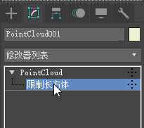 - 选择点云对象,并确保“启用限制框”在“限制框和体积”卷展栏上已开启。