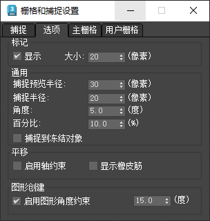 默认情况下,将会打开该对话框,其“捕捉”面板中的“标准”类别处于活动状态,且“栅格点”选项处于启用状态。