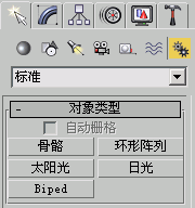 现在,“对象类型”卷展栏显示不同的系统类型。