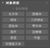 “对象类型”卷展栏上还提供了“自动栅格”选项,该选项用于在其他对象的曲面上创建对象。