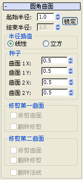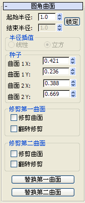 在所选择的第一曲面和第二曲面上,分别设置用于定义圆角的半径。此半径控制圆角曲面的大小。默认值为 1.0。
