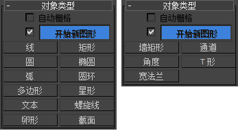 图形可以包含单条样条线,或者是包含多条样条线的复合图形。使用“开始新图形”按钮以及“对象类型”卷展栏上的复选框可以控制图形中的样条线数。