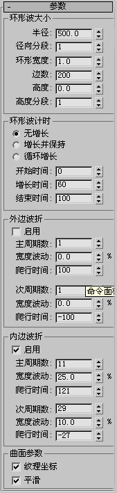 使用“环形波”对象来创建一个环形,可选项是不规则内部和外部边,它的图形可以设置为动画。也可以设置环形波对象增长动画,也可以使用关键帧来设置所有数字设置动画。使用各种特效动画的“环形波”,例如,要描述由星球爆炸产生的冲击波。