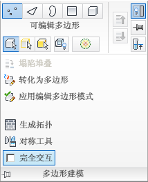 “多边形建模”面板包含用于切换子对象层级、导航修改器堆栈、将对象转化为可编辑多边形和“编辑多边形”等功能的工具。