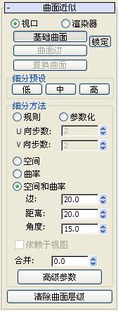 用于选择低、中或高质量的预设曲面近似值。选择预设值时,使用的值将会显示在“细化方法”卷展栏中。