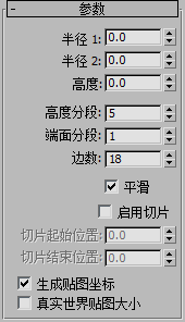 管状体周围边数。启用“平滑”时,较大的数值将着色和渲染为真正的圆。禁用“平滑”时,较小的数值将创建规则的多边形对象。