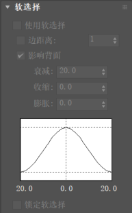 “软选择”卷展栏控件允许部分地选择显式选择邻接处中的子对象。这将会使显式选择的行为就像被磁场包围了一样。在对子对象选择进行变换时,在场中被部分选定的子对象就会平滑的进行绘制;这种效果随着距离或部分选择的“强度”而衰减。