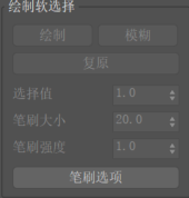 绘制软选择将绘制的子对象设置成最大值的速率。高的“强度”值可以快速的达到完全值,而低的“强度”值需要重复的应用才可以达到完全值。