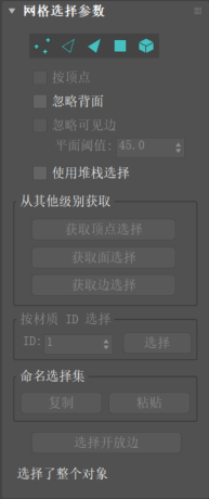 通过“选择”卷展栏顶部的图标,可以指定子对象选择的方法。