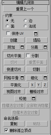 有关“编辑多边形模式”卷展栏设置的信息,请参见“编辑多边形模式”卷展栏。