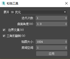 “松弛工具”对话框为以参数方式修改选定纹理坐标的间距提供了一个高级工具集,从而可以消除或最大限度减少纹理贴图的扭曲。