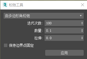 单击“应用”时应用“松弛”设置的次数。每个迭代将继续应用到上个迭代的结果中。范围为 0 到 100000。默认设置为 100(“展开 3D 优化”除外,为其 1 次迭代)。