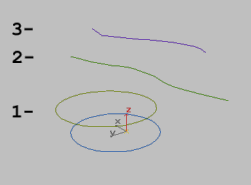 5. 在主工具栏上,单击 (“选择并移动”),然后在视口中移动对象以沿 Z 轴设置它们的顺序,多边形在底部,多边形上面有线。