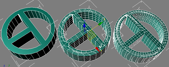 “四边形网格化”修改器将对象结构转换为指定的相对大小的四边形。与网格平滑结合使用时,此功能有助于产生圆形边。