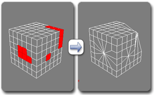 通过将其顶点与选择中心的顶点焊接,使连续选定子对象的组产生塌陷。
