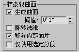“生成曲面”选项处于启用状态,将导致修改器创建面片,在样条线框架中这些面片处于所有有效的三边和四边多边形之上。
