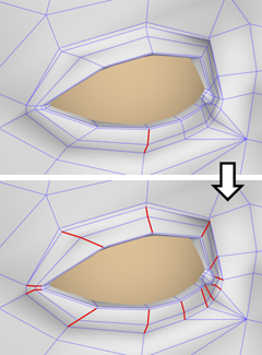 使用“收缩”和“扩大”,可以从当前选择的边上添加或移除相邻元素。该功能可以用于任意子对象层级。