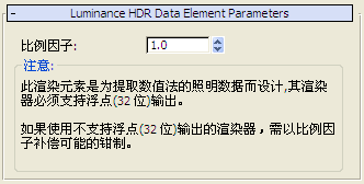 设置在渲染亮度数据时要使用的比例因子。(使用生成 32 位输出的渲染器时无需执行此操作。)