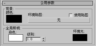 在“环境”面板上,“环境贴图”按钮更改为显示所选贴图的类型,并且“使用贴图”启用。