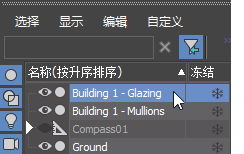 - 再次使用“场景资源管理器”面板选择 Building 1 - Glazing 对象。