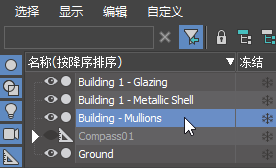 - 在“场景资源管理器”面板中,选择 Building 1 - Mullions 对象。