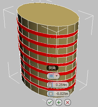 3ds Max 将显示“切角”工具的 Caddy 控件。